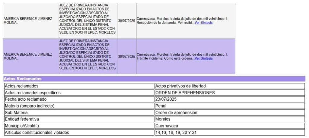 La otrora Contralora en el gobierno de Cuauhtémoc Blanco, América Berenice Jiménez Molina tramitó un amparo por temor a ser detenida ante una probable orden de aprehensión liberada por jueces del Sistema Penal Acusatorio con sede en Atlacholoaya.