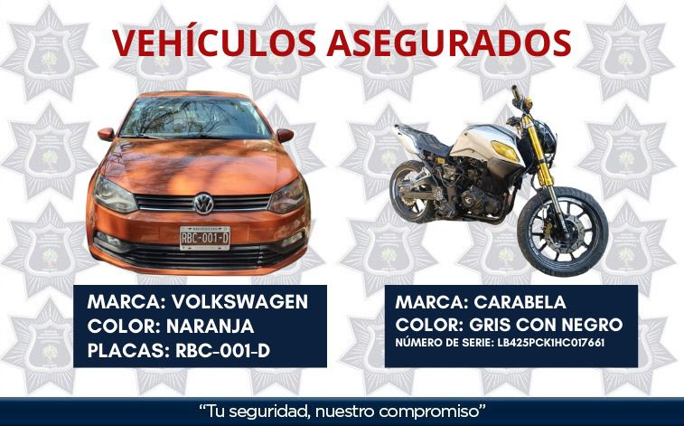 - Vehículo tipo Polo, marca Volkswagen, color naranja, con placas RBC-001-D del estado de Morelos.