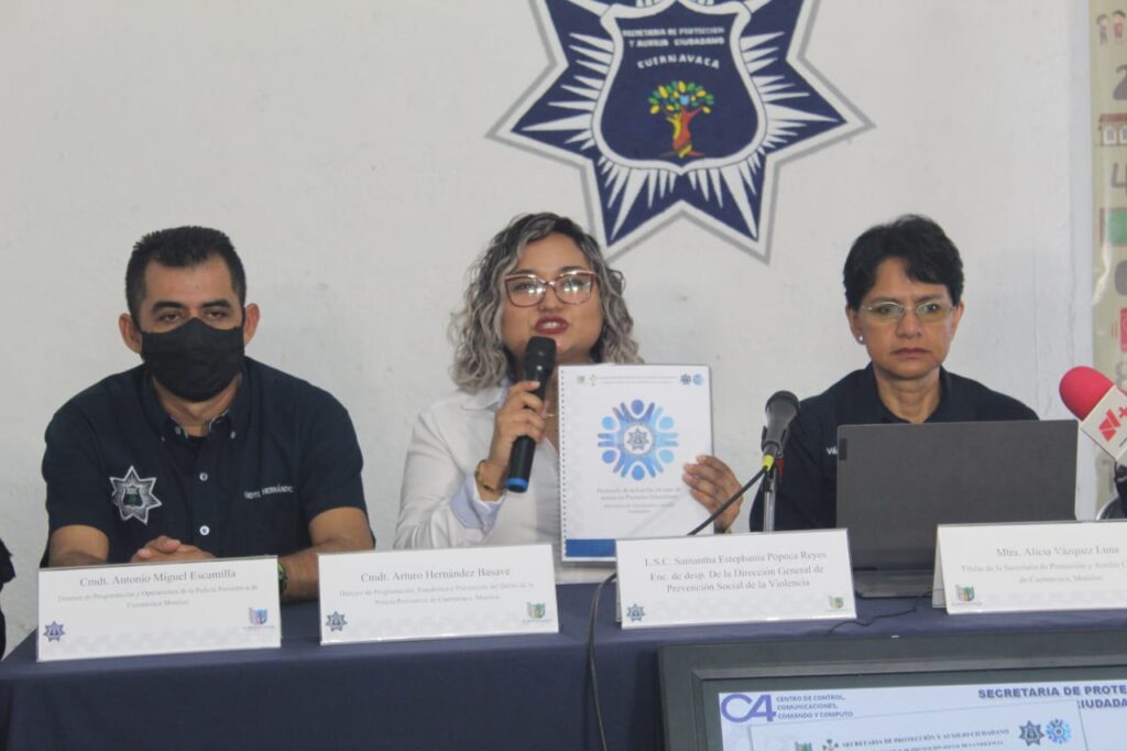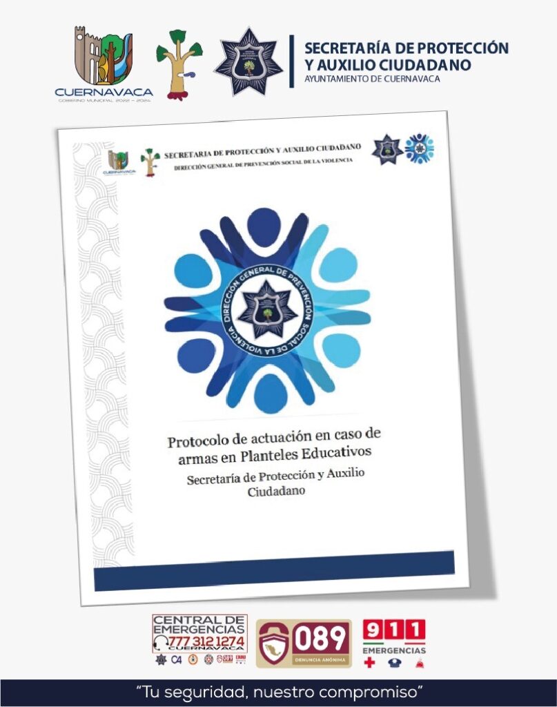 La Secretaría de Protección y Auxilio Ciudadano de Cuernavaca (SEPRAC), a través de la Dirección General de Prevención Social de la Violencia, presentó este lunes el “Protocolo de actuación en caso de armas en planteles educativos”, que tiene por objeto establecer normas básicas de actuación para madres y padres de familia, así como autoridades de instituciones educativas ante la presencia de vulnerabilidades, riesgos y amenazas por armas.