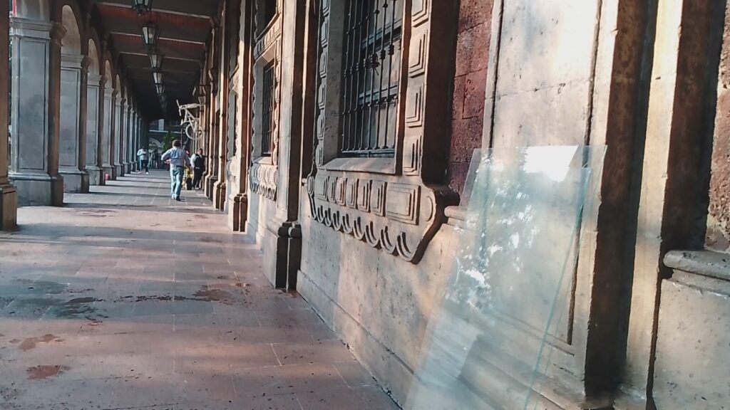 Un Palacio de Gobierno limpio -sin vidrios rotos y pisos lavados a presión- recibió a los transeúntes la mañana de este lunes. Es 9 de marzo, un día después de la mega marcha del #8M en Cuernavaca.