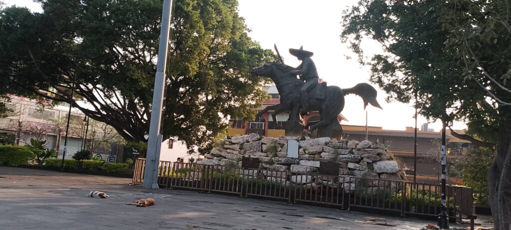 Mientras que del otro lado de la Plaza de Armas, la estatua ecuestre del General “Emiliano Zapata” se mostraba limpio: las leyendas con spray y los cartelones con la exigencia de justicia para las víctimas de feminicidio y una investigación ágil de los desaparecidos, fueron removidos.