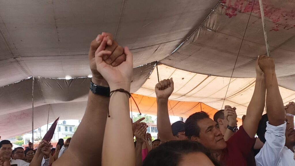 Ante los candidatos a un cargo de elección popular, Margarita González Saravia candidata a la gubernatura y Adán Augusto López, coordinador político de la campaña en Morelos; Mario Delgado reiteró el llamado a la unidad y de paso, crítico la movilización convocada por Xochilt Gálvez: “aunque se vistan de rosa, no dejan de ser PRIAN”, arremetió.
