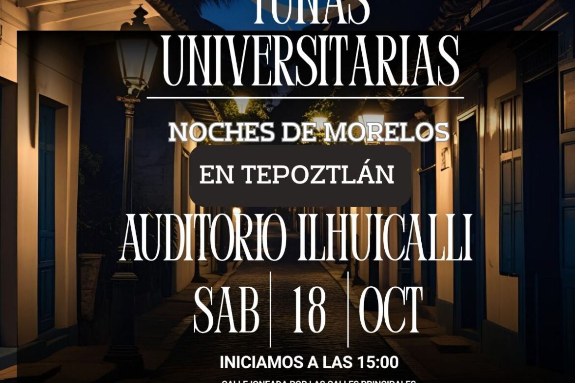 El municipio de Tepoztlán será sede del Centamen de Tunas y las Noches de Morelos el próximo 18 de octubre de 2025, atrayendo talento universitario de diversas entidades del país.