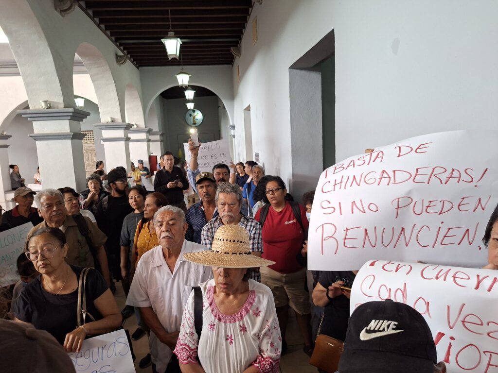 manifestantes, integrantes de la Asociación “Gustavo Salgado Delgado” exigieron que el Ayuntamiento aumente de 11.21% a 30% la inversión en obras y servicios dentro del presupuesto 2026.