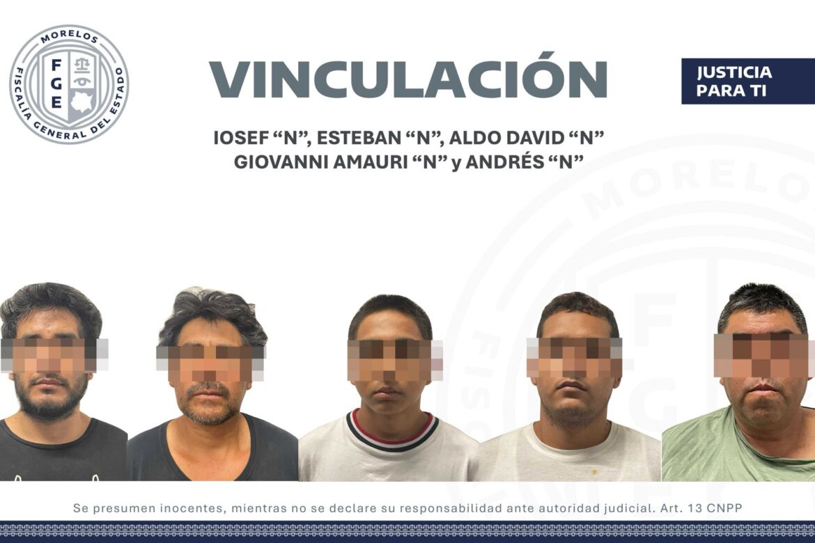 Durante la audiencia celebrada en la Ciudad Judicial de Jojutla, el juez decidió vincular a proceso a Iosef “N”, Esteban “N”, Aldo David “N”, Giovanni Amauri “N” y Andrés “N”, a quienes ordenó mantenerlos en prisión preventiva como medida cautelar.