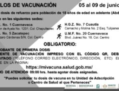 La Brigada Correcaminos informa que continúa la aplicación de primeras dosis y refuerzo del biológico Abdala en personas mayores de 18 años del lunes 5…