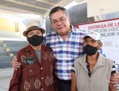 El alcalde Rafael Reyes e integrantes del Ayuntamiento de Jiutepec entregaron de manera gratuita 100 pares de lentes graduados, gestionados por la secretaría de Desarrollo…